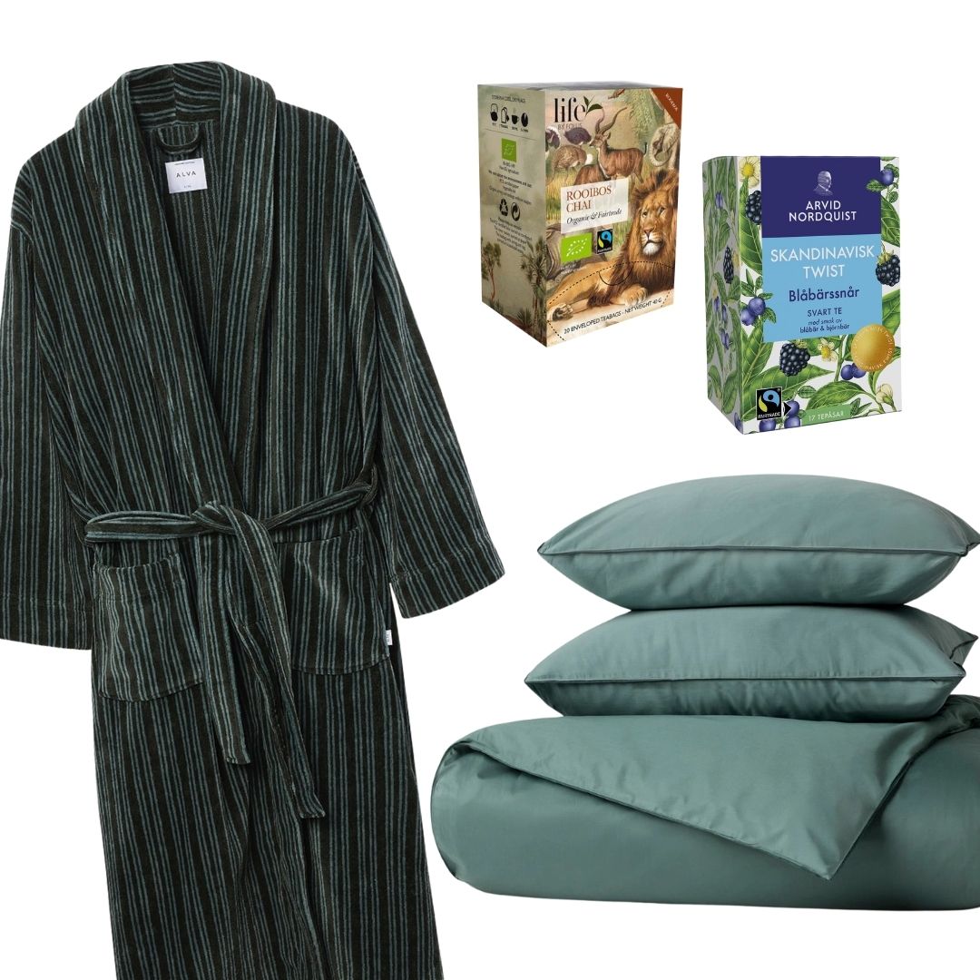 Morgonrockar och påslakan i Fairtrade-märkt och ekologisk bomull finns hos Alva Linen i flera olika färger. Det finns också många olika sorters Fairtrade-teer från bland annat Arvid Nordquist och Life by Follis som går att hitta i de flesta matbutiker.